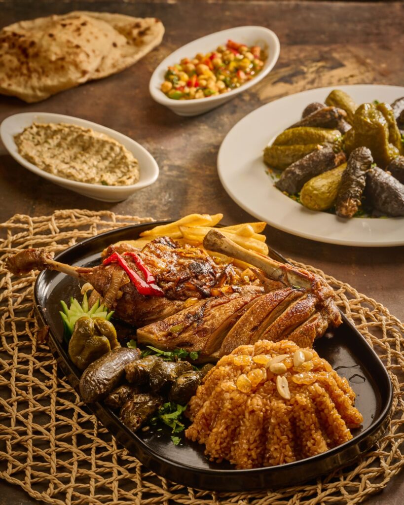 موزة ضاني + أرز أو فته + محاشي + بوم فريت